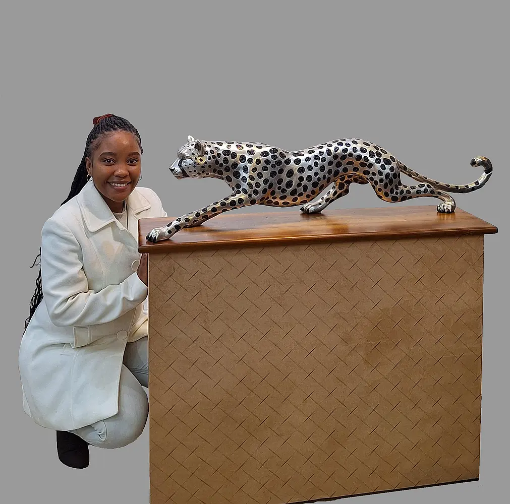 This cheetah is portrayed in the typical stalking posture just prior to the chase of its prey that will see it achieve a top speed of over 100 kph (60mph) in just 3 seconds!