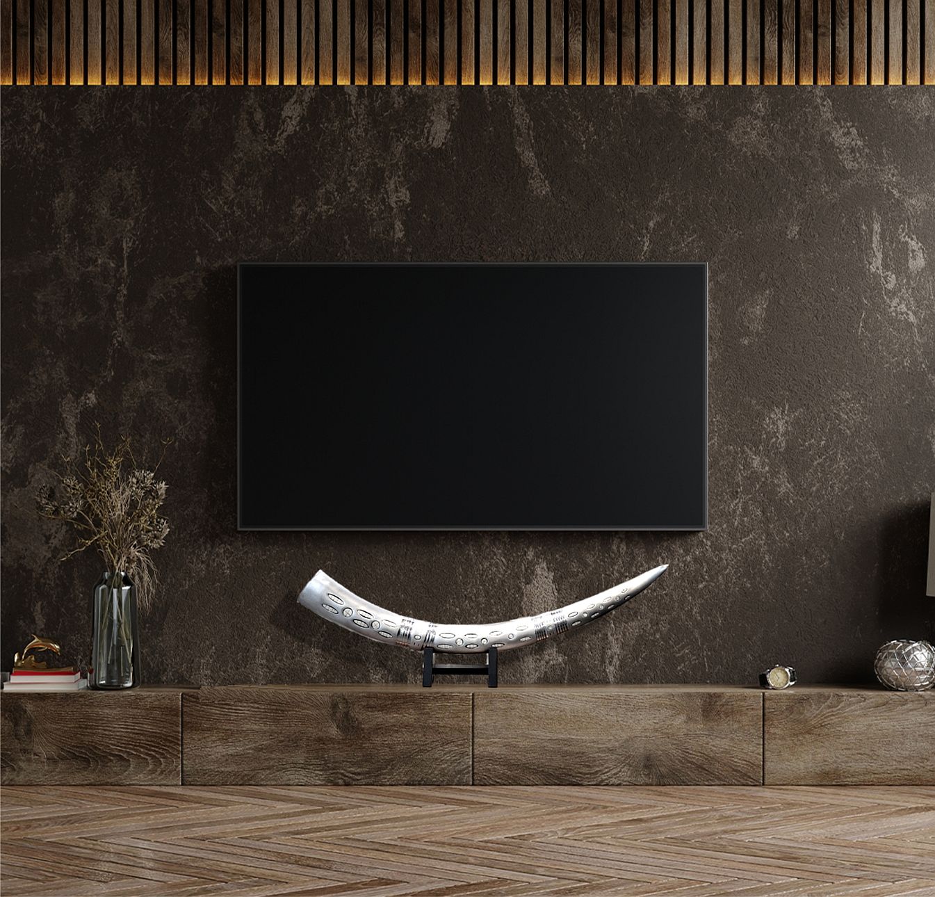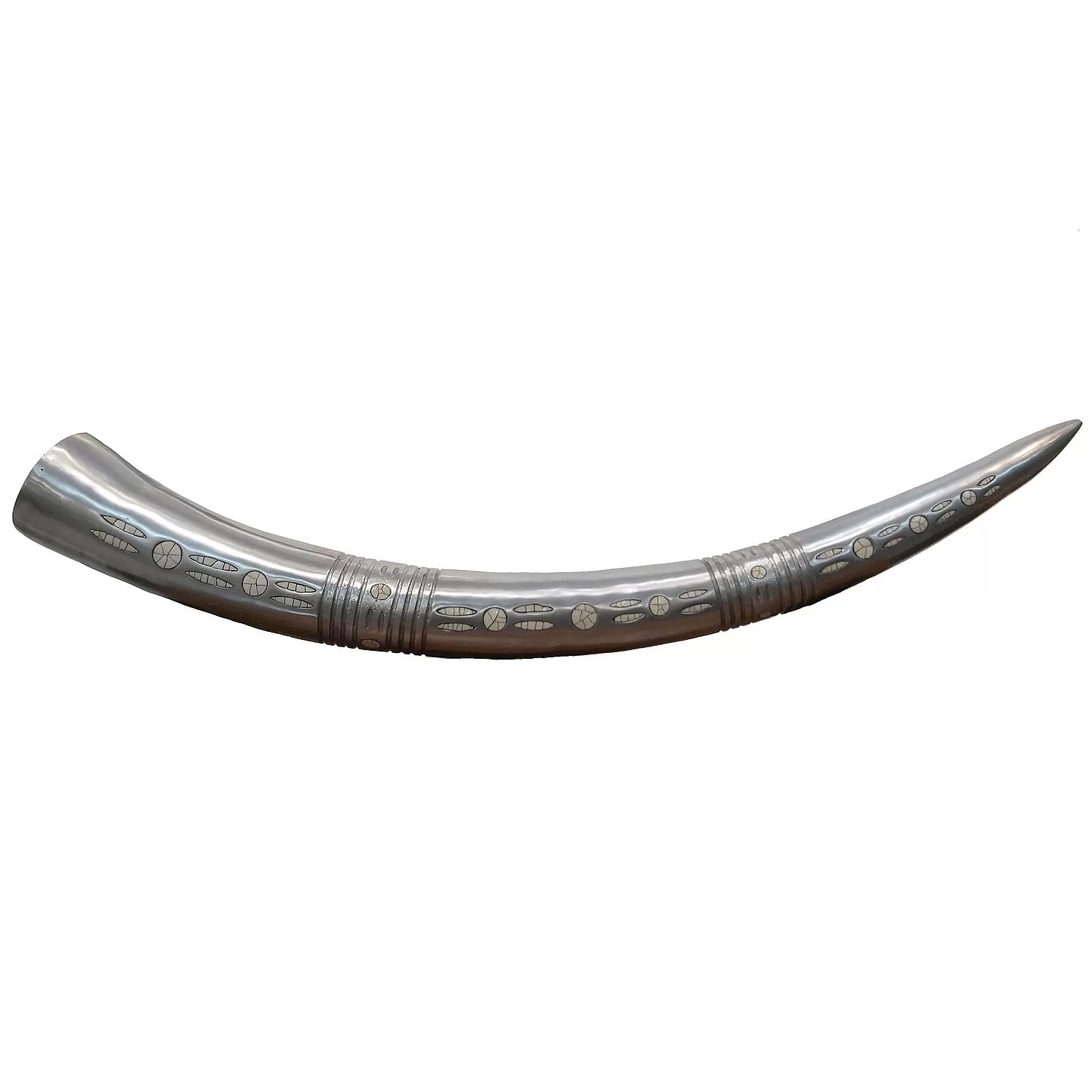Elephant tusk sculpture cast in aluminium and detailed by hand with ostrich eggshell, sourced from sustainable hatcheries in South Africa.