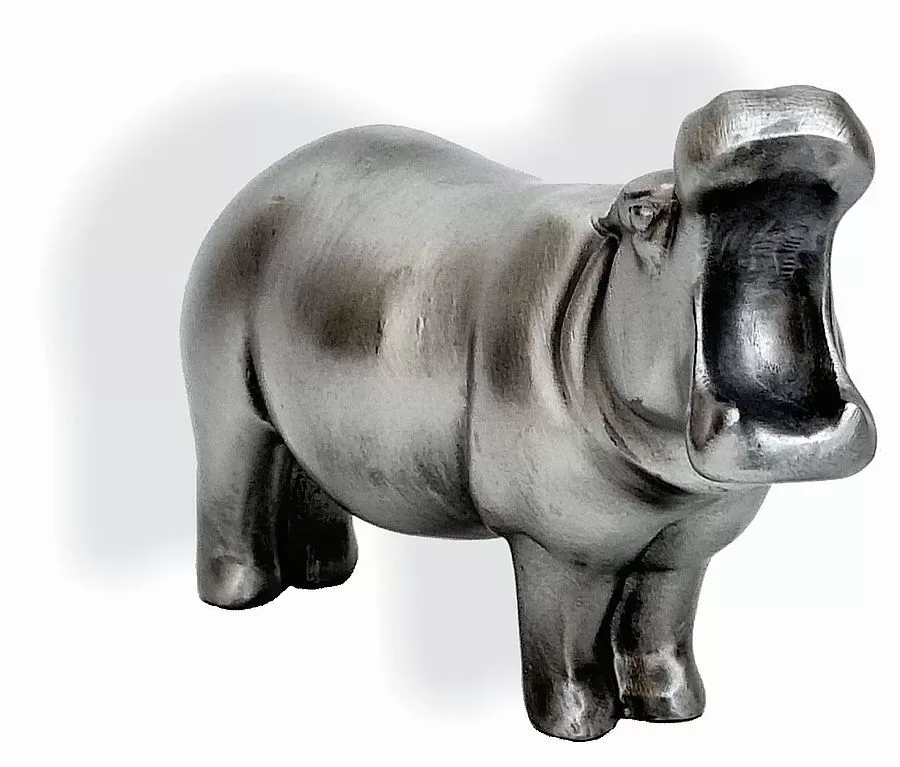 Solid pewter sculpture of a hippo, with a beautiful brushed satin finish. Contemporary design.
