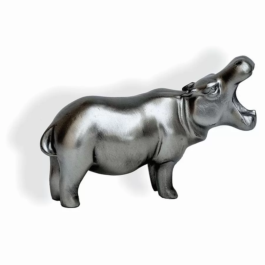 Zawadi solid pewter sculpture of a hippo, with a beautiful brushed satin finish.