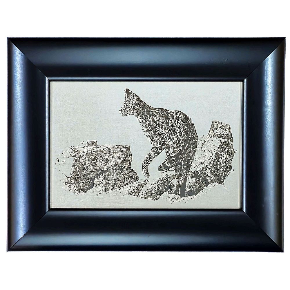 A laser engraved picture of a Johan Hoekstra original painting, done under license. Engraved on 304(18/10) Grade Stainless Steel. Framed, and supplied with an easel, it can be wall-mounted or free-standing. Personalised designs welcome. Frame size is 23,5cm x 17,5cm