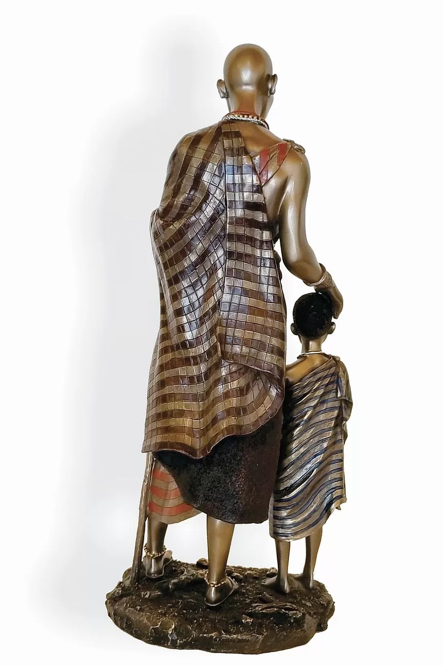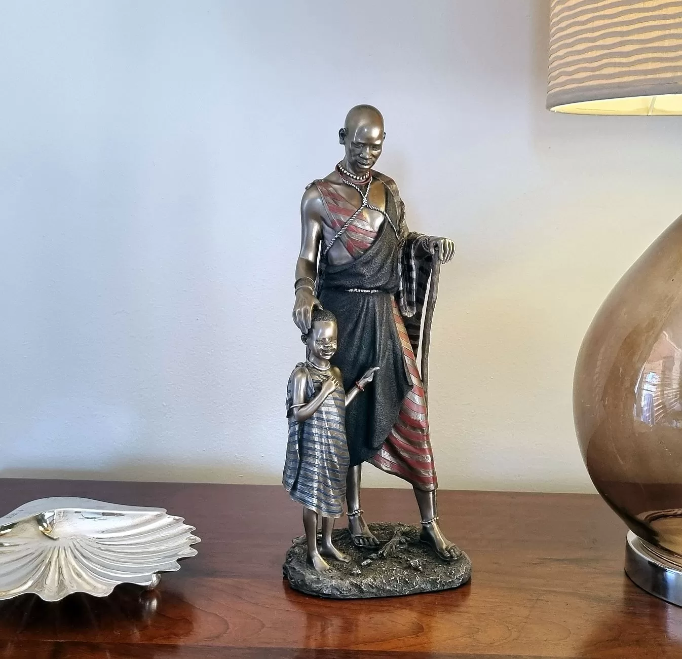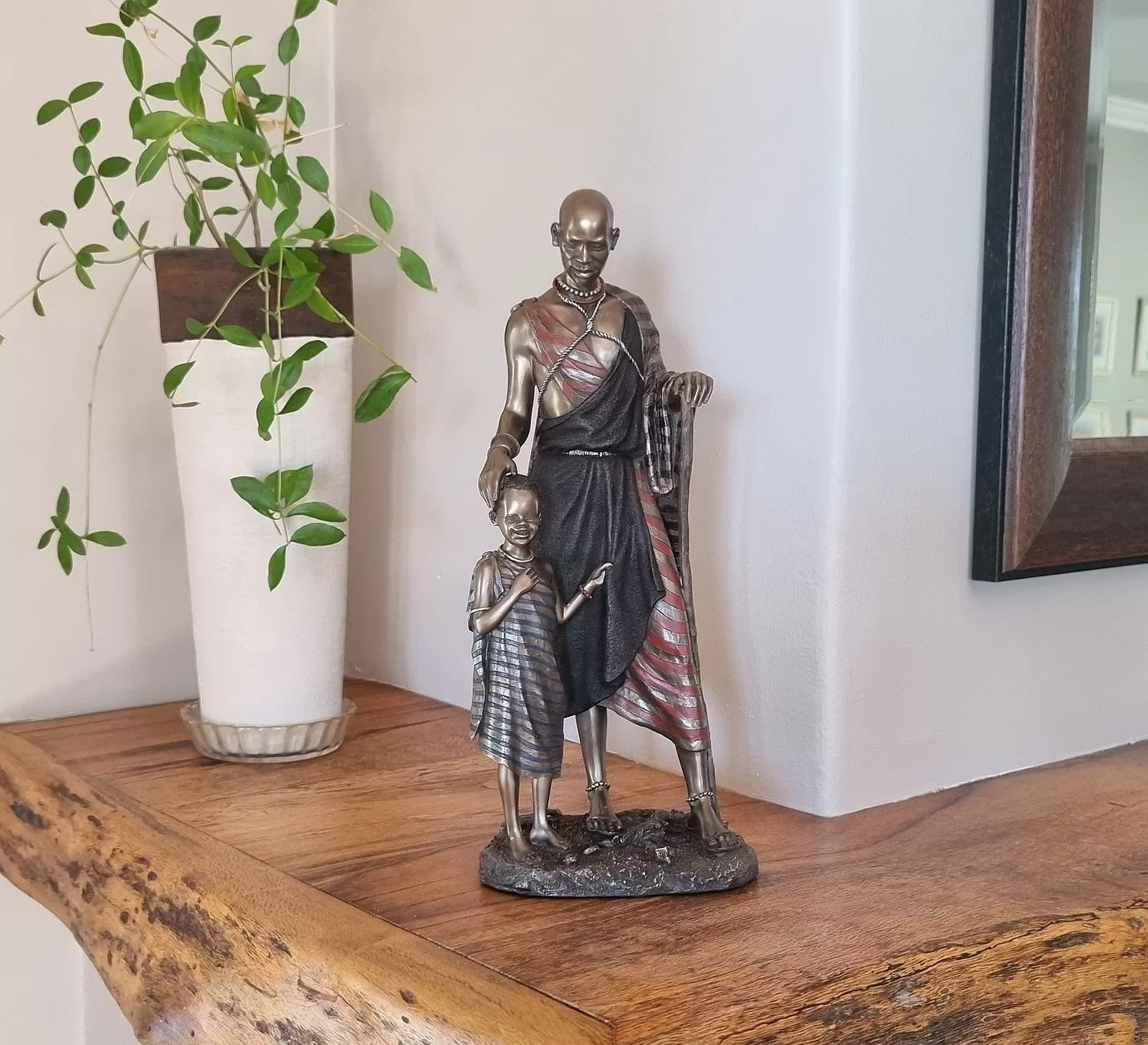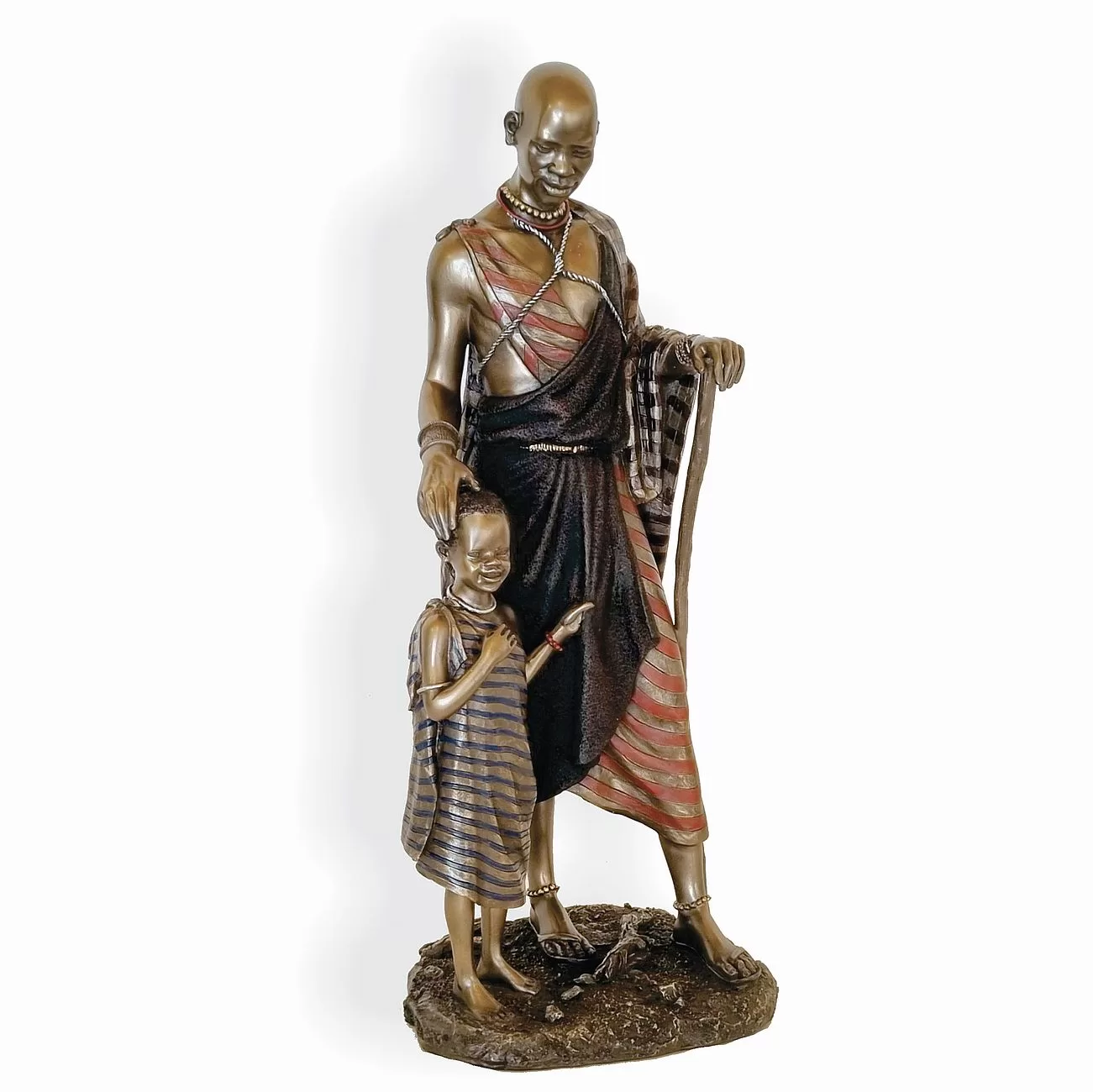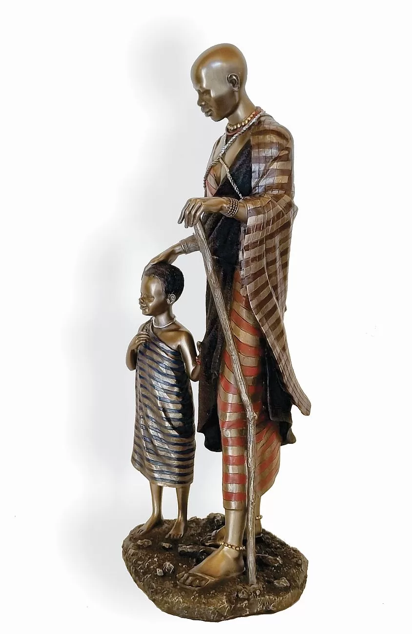 Cold-cast bronze sculpture of a Maasai man and his son.