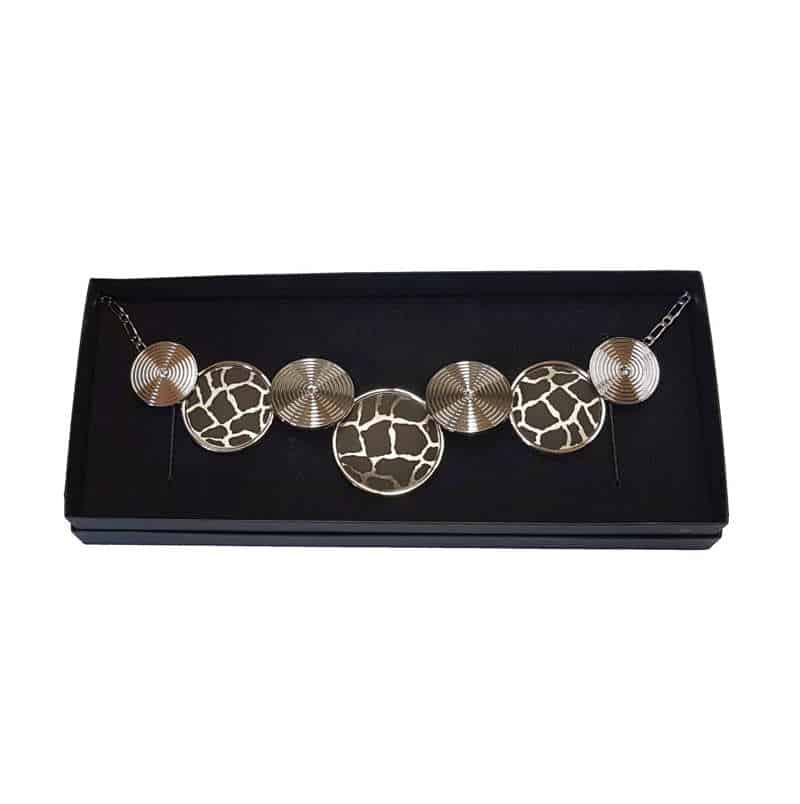 Engraved African designs by Zawadi on stainless steel necklace with adjustable chain length. Genuine Swarovski crystals.