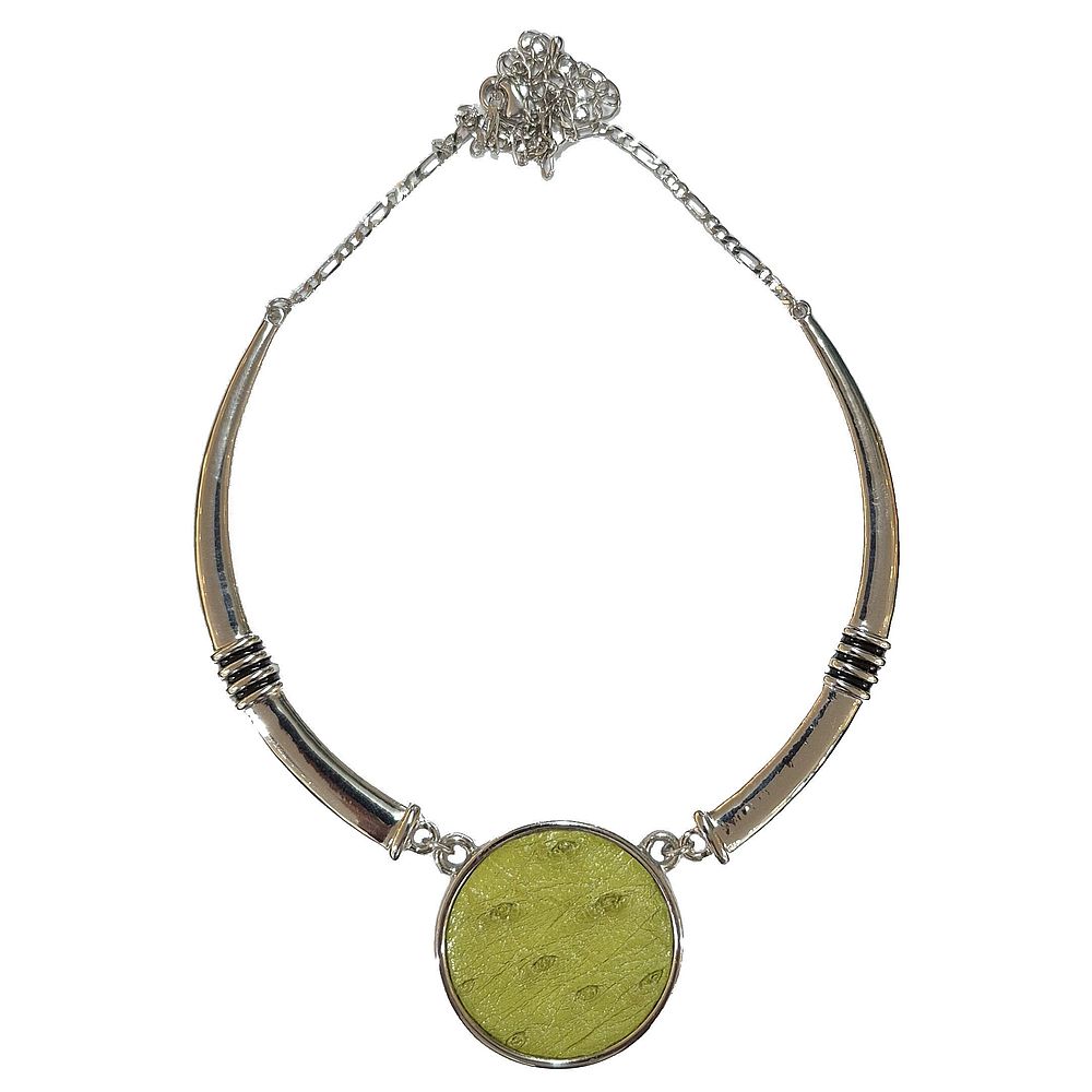 Superior plating quality ensures tarnish-free wear. All Necklaces are nickel and lead-free. Genuine ostrich leather inlay, sourced from sustainable farms in South Africa.